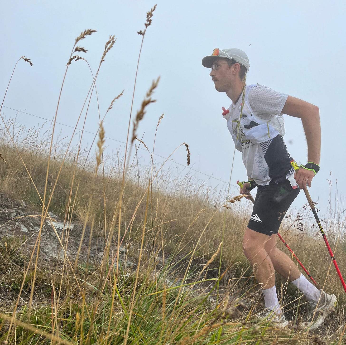 Why are we still pushing? Is it really necessary? Wouldn’t it make more sense to save it for the final descent? Yes, I am eating, yes, I’m drinking, yes, I’m using the poles!